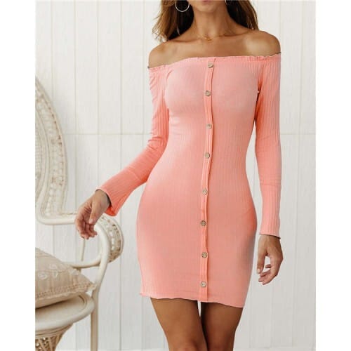 Off-shoulder High Fashion One-piece Slim Style Short Women Dress – Pink