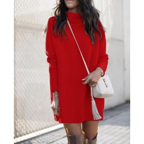 Round Neck Knitted Long Sleeves Winter/ Autumn Wholesale Women Dress – Red