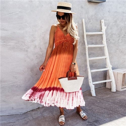 Temperament Gradient Color Large Skirt Beach Suspender Dress – Orange
