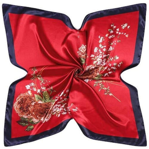 4 Colors Available Auspicious Flowers Vintage Fashion 90*90 cm Women Artificial Silk Square Scarf