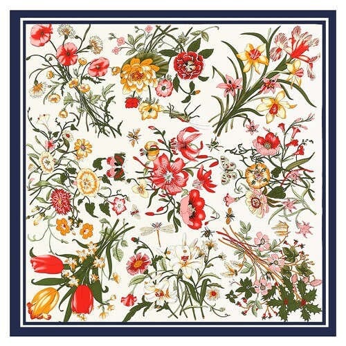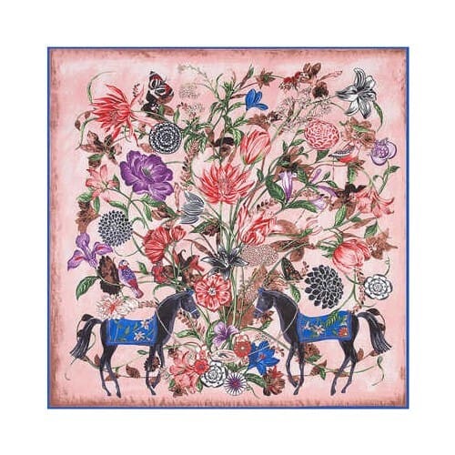 7 Colors Available Horses and Flowers Abstract Fashion 130*130 cm Artificial Silk Square Women Scarf