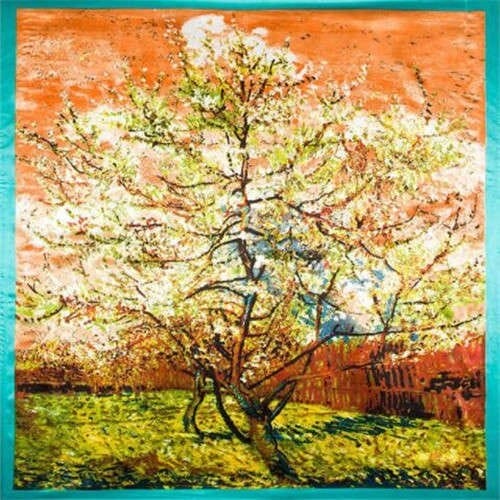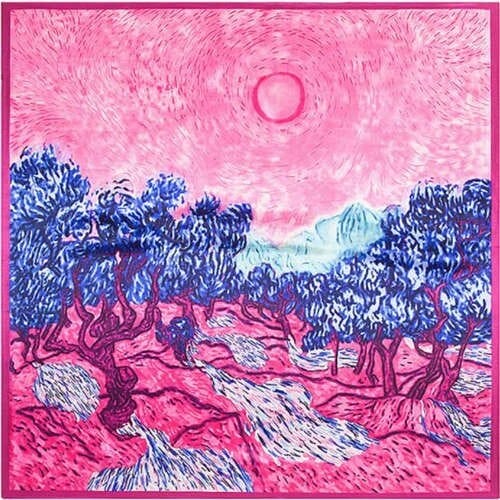 3 Colors Available Landscape Oil Painting 90*90 cm Square Women Artificial Silk Scarf