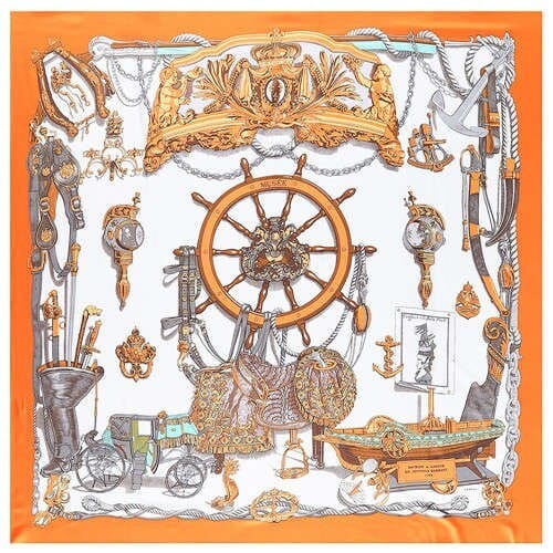 Royal Fashion Rudder and Carriage Combo Design Artificial Silk Square Women Scarf – Orange
