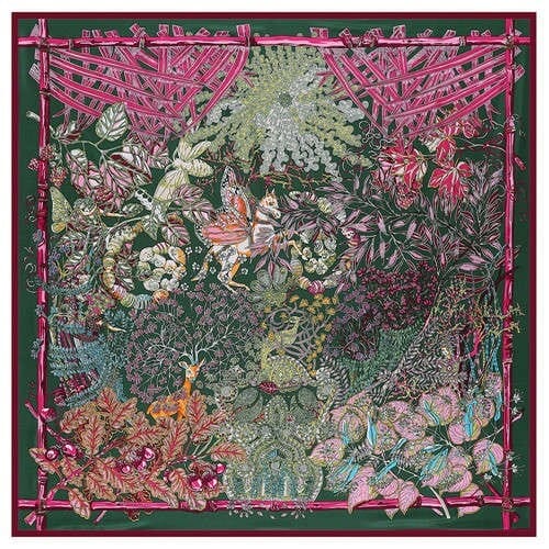 Forest and Animals Artistic Design High Fashion 130*130 cm Artificial Silk Square Women Scarf – Green