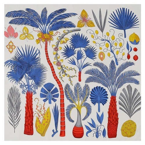 Folk Fence Prosperous Tree Oil Painting Romantic Design Women Square Scarf – Blue