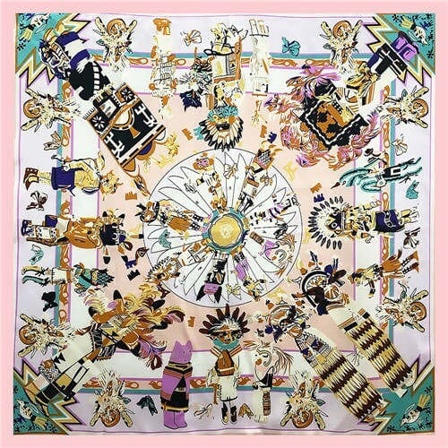 Classic Amerian Indian Party Theme Artificial Silk 90*90 cm Women Square Scarf – White