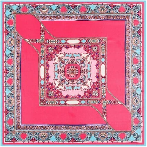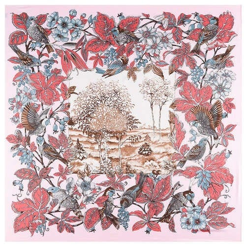 Pastoral Design Women Artificial Silk Square Scarf – Pink