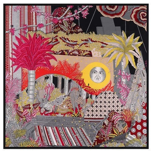 Vintage Court Style Camel Pattern Women Artificial Silk Square Scarf – Red