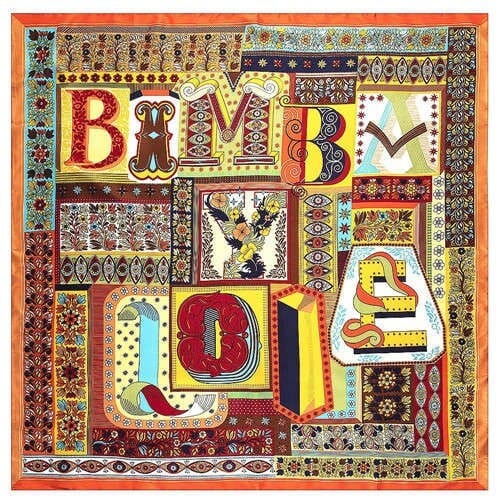 Assorted Alphabets Element Puzzle Design U.S. and European Fashion Women Square Scarf – Orange