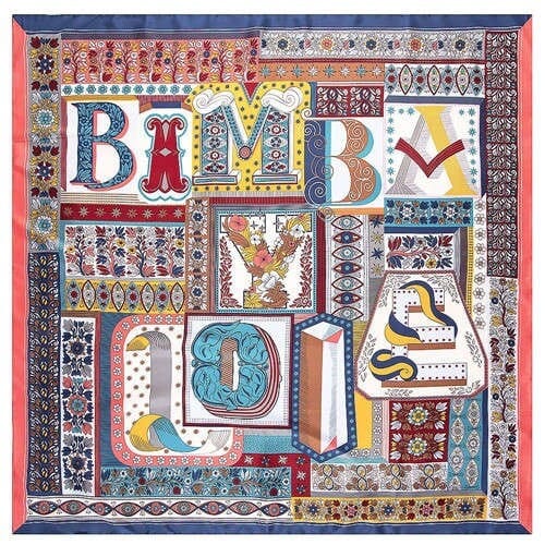Assorted Alphabets Element Puzzle Design U.S. and European Fashion Women Square Scarf – Sky Blue