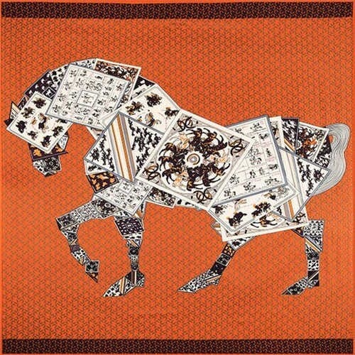 6 Colors Available Abstract Horse Design 130*130 cm Artificial Silk Square Women Scarf