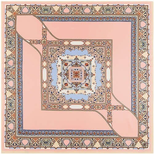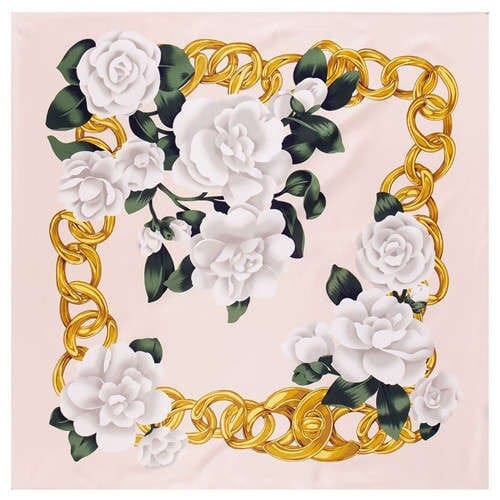 Gold Chain Prosperous Roses Embellished Classic Design Fashion Women Square Scarf – Pink