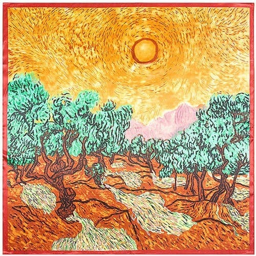 Summer Forest Oil Painting Attractive Design Artificial Silk 90*90 cm Women Square Scarf – Yellow