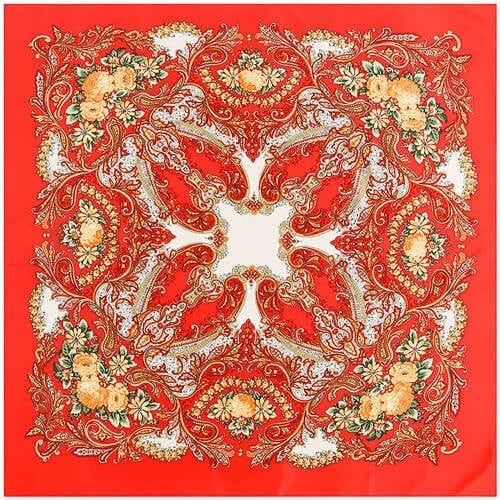 Folk Style Prosperous Roses Prints Design High Fashion Women Square Scarf – Red