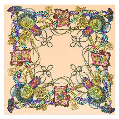 Abstract Floral Prints French Fashion Women Square Scarf – Champagne