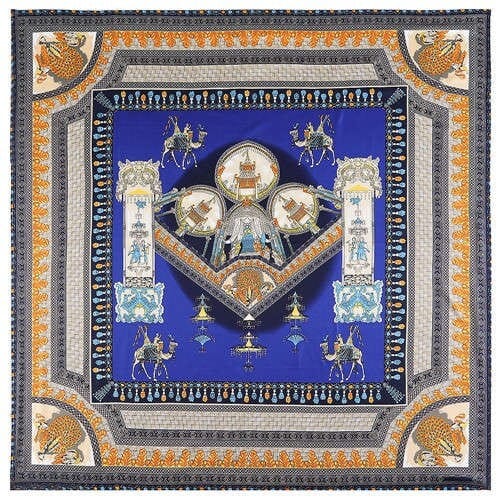 Vintage Court Style Camel Pattern Women Artificial Silk Square Scarf – Royal Blue