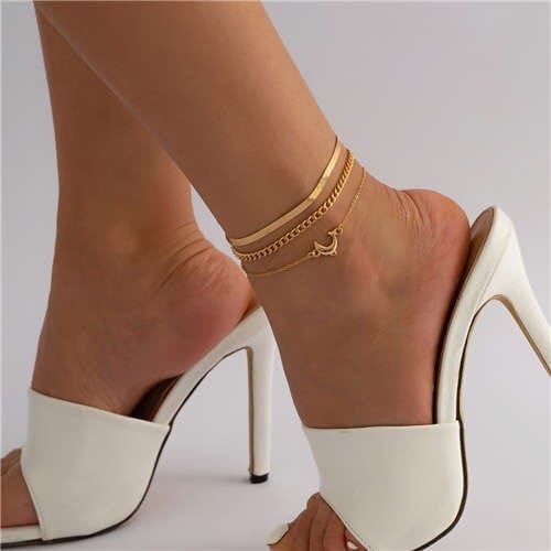 Little Dolphin Pendant Women Multilayer Alloy Wholesale Anklet – Golden